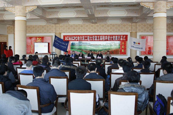 开幕式于上午8点30分在启航活动中心教师沙龙正式举行。出席开幕式的嘉宾有校教务处副处长刘志强,计算机学院副院长黄少滨,哈尔滨工程大学ACM组委会指导老师、裁判员代表计算机学院俞经善老师,计算机学院团委书记郎大鹏。