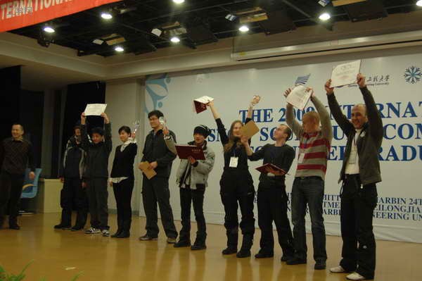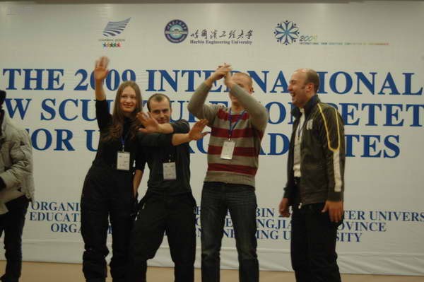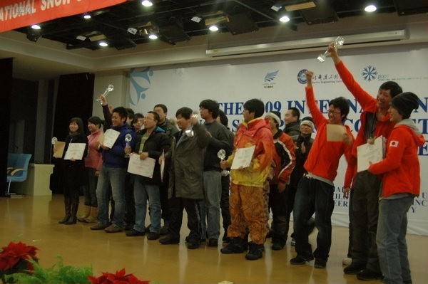 本届雪雕大赛经评委会从主题、技巧、创造性和艺术表现等各方面进行认真审核评选,最终评出一等奖两项,作品分别为俄罗斯远东国立人文大学Ⅰ队的《他和她》和哈尔滨理工大学代表队的《白雪公主和七个小矮人》;二等奖三项,分别为我校的《猫来了》、俄罗斯远东国立人文大学Ⅱ队的《激吻》和黑龙江大学代表队的《三个老头》;获得三等奖的作品分别为北见工业大学代表队的《日本美人》、鲁迅美术学院代表队的《吉娃娃》、广州美术学院的《叛逆的曙光》、华东理工大学的《魂》、天津科技大学的《文明》、哈尔滨工业大学代表队的《青春·旋律》。英国诺丁汉特伦特大学、国际联队Ⅰ、国际联队Ⅱ、北华大学、景德镇陶瓷学院、大连理工大学、长春工程学院、华侨大学、东华大学9支参赛队伍的作品获得优秀奖。