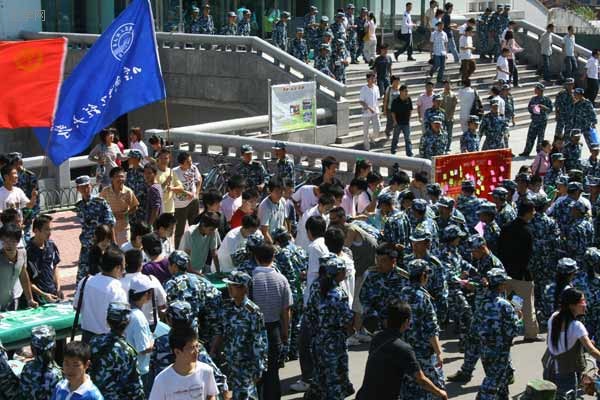 9月1日正值我校“校庆日”,中午,在大学生美食城、大学生美食广场前,由校团委组织的我校“爱心月”主题活动“爱心传递和谐,师生欢度校庆”爱心传递火热登场,丝带象征爱心,互系象征传递,同学们用互系绿色丝带的形式传递爱心,拉开“爱心月”序幕。
