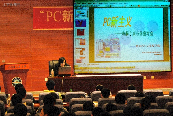 讲座中,刘增明向同学们具体讲解和介绍了组装机和品牌机间的差别,并且具体介绍了PC机中元器配件的性能和用途。在整场讲座中还举行了有奖知识问答,充分激发了同学们的热情。