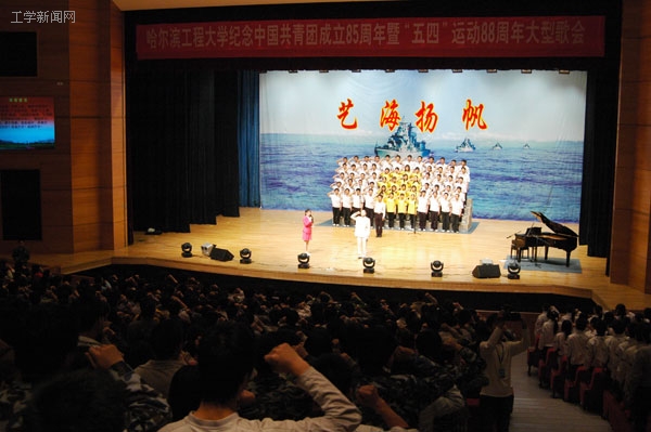 4月28日晚,哈尔滨工程大学纪念中国共青团成立85周年暨“五四”运动88周年大型歌会在启航活动中心剧场隆重举行。全校各院系团员青年欢聚一堂,庆祝即将到来的“五四”青年节。