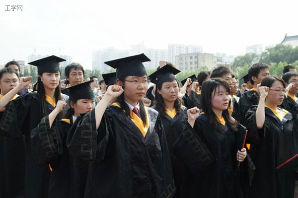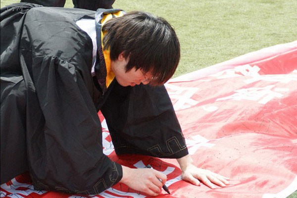 典礼开始前,毕业生们在誓词旗上庄严的签下了自己的姓名,郑重承诺从此承担起家庭的重担,社会乃至整个国家的民族的责任。