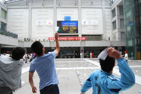 6月6日上午,首届“航建杯”纸飞机大赛在启航活动中心阳光大厅鸣锣开战。