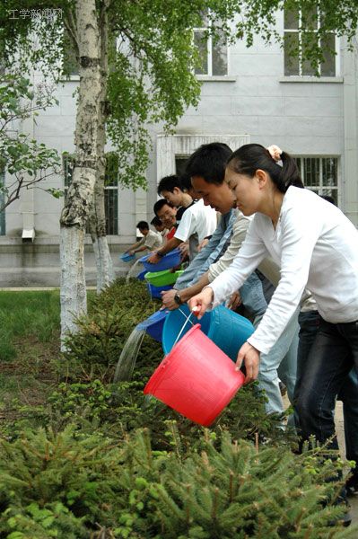 同学从寝室带来了水桶水盆,耐着高温,细心地给每一株小树苗,每一片草地浇水。此次活动的举行开展使同学们在实践中增强绿化、美化校园的意识,同时以实际行动号召更多的同学加入到绿化校园的行列,关爱我们共同的家。