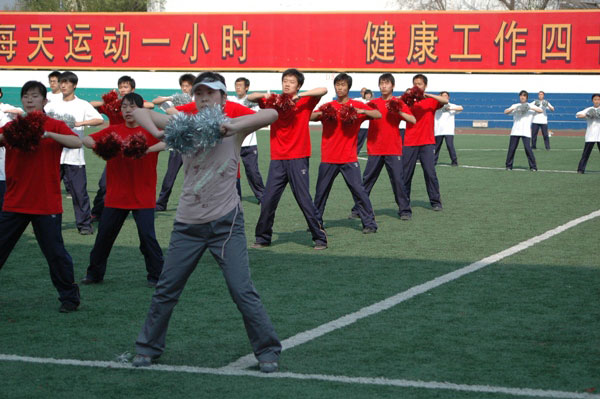 校健美操大赛选拔赛5月14日下午在北体育场举行。