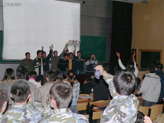比赛在轻柔的手语表演《感恩的心》之中拉开了帷幕,陆续进行了包括歌曲、相声、小品、诗歌朗诵、手工工艺品及吉他弹奏等各式各样的才艺表演。表演者或者拥有动听的歌喉,或者具备超强的模仿力,又或者富有丰富的想象力,通过这些节目,把他们的才艺和青春展示得淋漓尽致。比赛中,观众席上时常响起支持的口号声,而场上精彩的表演同样博得观众一阵又一阵雷鸣般的掌声。正所谓场上赛者倾情演出,场下观众热烈响应。当051052班某一节目上台演出时,场下立即响起了雷鸣般的掌声,伴随的,还有他们班同学呐喊助威的口号声,全场顿时一片沸腾,很多人都激动得站起来鼓掌,更有甚者,有的人则象见到了自己的偶像似的尖叫了起来,比赛被推进了高潮。最后,12#438寝的小品《功夫》荣获一等奖,5#734和12#437寝分别以歌曲《半糖主义》和《season in the sun》获得二等奖,5#732、725和726寝、12#434寝获得大赛的三等奖。