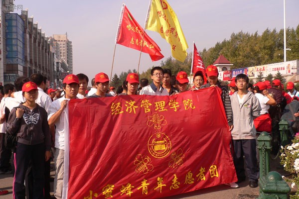 9月20日,经济管理学院“小蜜蜂”青年志愿者来到中央大街防洪纪念塔,参加生活报“王帮办”义务服务活动,清理松花江沿岸垃圾。