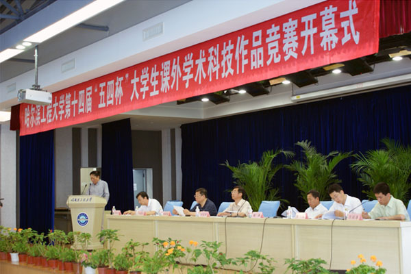 6月28日,哈尔滨工程大学第十四届“五四杯”大学生课外学术科技作品竞赛开幕式在启航活动中心多功能厅隆重举行。