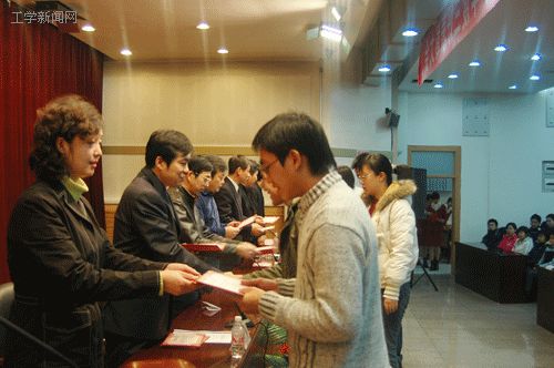 随后,获得奖学金及院“三好学生”、院“优秀学生干部”荣誉称号的学生,共计68人上台领奖。04—422班白雪冬代表获奖学生发言。