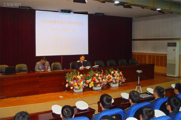 9月25日 下午,我校校友、海军东海舰队某驱逐舰支队副支队长黄新建大校在校逸夫馆为海军国防生作了题为“中国海疆形势与海军的使命”专题报告。