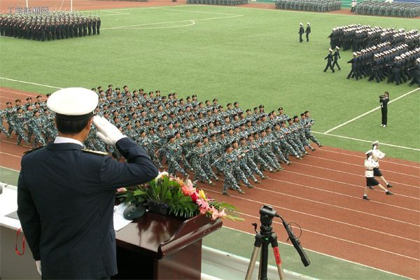 在随后的分列式中,军训旅分成24个方阵,在军旗的带领下,以严整的队形、齐整的步伐依次经过主席台,庄严接受检阅。或是雄浑,或是清冽,一阵阵高亢嘹亮的口号在体育场上空回荡。