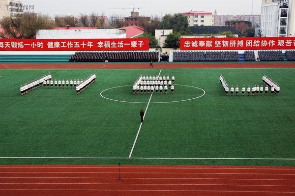 汇报会最后一项是精彩的军训成果汇报表演。一营女兵进行了队列表演,点点白衣在绿草上拼出我校英文缩写“HEU”等图形,全场响起了热烈的掌声。190名国防生组成的刺杀方队表演和五营的军体拳表演也不时赢来全场阵阵掌声。