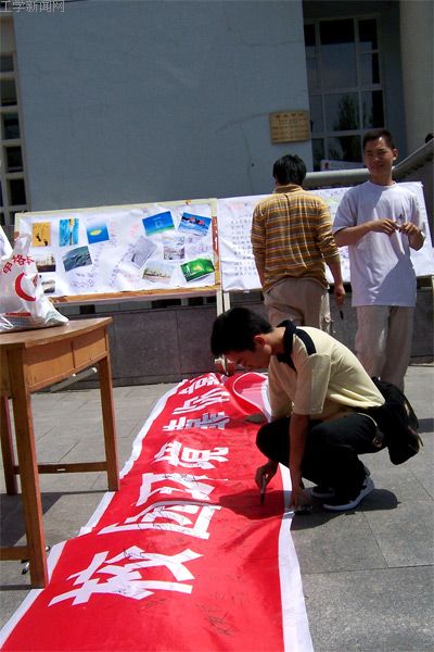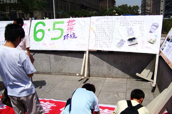 六月四日,机电学院团委在大学生美食城前举行了“校园环境靠你靠我”签名活动暨“六·五”世界环境日宣传活动,现场展板上丰富的文字及图片内容吸引同学们纷纷驻足观看并签名。