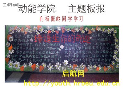 4月10日,动力学院团委组织同学积极学习杨振岭先进事迹的活动。学院团委首先组织05、04级的同学阅读有关杨振岭同学的先进事迹,以此鼓舞同学;同时,在31号楼设立宣传板报,使更多人了解和学习杨振岭的事迹。