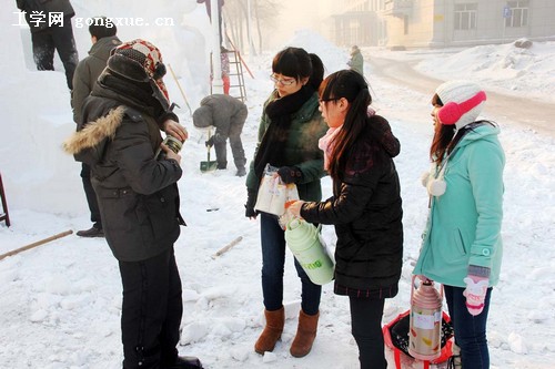 形态各异的雪雕作品伫立校园,远远望去颇为壮观。对于雪雕大赛,满意的是参观者,享受的是参与者,奉献的是全校师生。雪雕大赛开始前的一个月,我校相关机关部门和院系就着手筹备各项工作。国际处负责联系国际高校,校团委组织活动、培训志愿者,党委宣传部积极邀请校外媒体进行预热宣传报道,后勤集团制作雪块、为参赛队员们提供食宿,机电学院和雪雕工作室提供技术支持和保障……