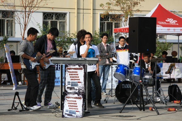 广场中最耀眼的当属Naval乐队了,刚开始提到的锣鼓声就是从这里涌出的。一位主唱,三个吉他手,还有一个打击乐手,阵容不算强大,但效果却丝毫不差。音乐激情澎湃,歌词也充斥着年轻人的张狂与自信,理想与抱负。还有对过的街球表演,也让人感受到运动的美丽,以及个性。他们的精彩表演令人想起一句话:人不轻狂枉少年!