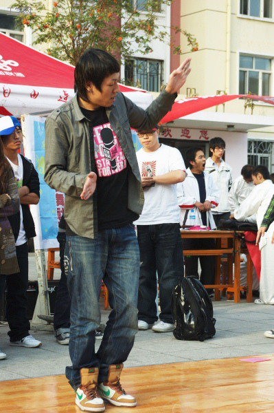 广场上,忽然一阵劲爆的音乐响起,接着就是如潮的尖叫。回头仔细一看,原来是街舞协会的人正在现场秀,吸引着众多人的眼球。街舞成员一个接一个地表演,花样百出,新奇、刺激。他们的机械舞也表演得惟妙惟肖,可爱至极。那一阵阵让人眼花缭乱的颤动,一个个看似机械呆滞的动作,却透露着一股狂野不羁,一股爆发的力量,让人感到这就是年轻的力量,青春的激情与朝气。