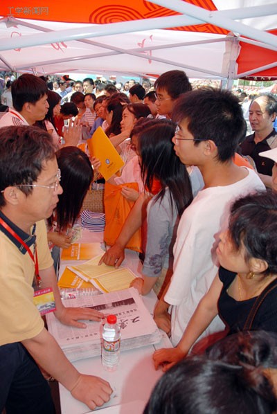 有很多白发苍苍的老人陪着孙子、孙女来咨询信息,脸上的关切之情溢于言表。一位陪外孙一起来的老大娘对记者说:“孩子参加高考,我们全家来了一个总动员。这不,孩子的父母上班不能来,我们四个老头、老太太就全来了。虽然孩子问什么、老师答什么我们都听不懂,可不来就是不放心。”还有一位考生的奶奶拉着记者一把鼻涕一把泪泣不成声,原来她孙子特别想学计算机专业,可是因为孩子的手有轻微的残疾不方便使用键盘,将与梦想失之交臂。
