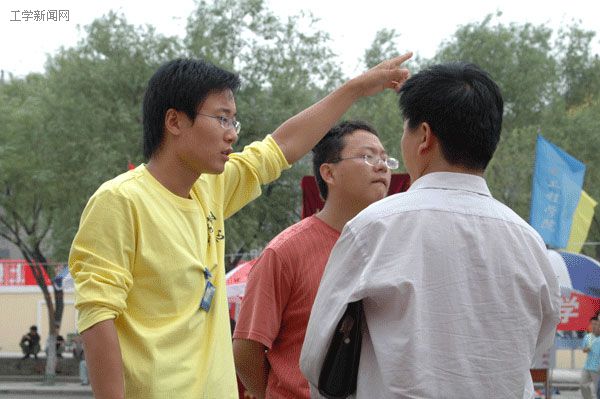 工学新闻网工作人员为新生和家长们指引道路,排忧解难