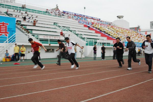 在今天下午13:55进行的教工益壮男子组60米托球跑比赛中,直属部的白长平以10″20的成绩夺得比赛第一名,龚孝德(后勤、10″50)、贾耀林(工程中心,12″10)、王承军(后勤)、李宏志(后勤)、张仁风(工程中心)、许岷(核学院)和沈明启(核学院)分别获得本项目的第二至八名。