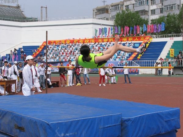 在26日上午进行的学生女子组跳高决赛中,人文学院的赵彩虹和化工学院的曹雪分别以1米57、1米50的优异成绩打破学校记录,夺得比赛冠、亚军;获得第三至八名的是陈美霞(经管)、张箴言(信通)、吴艳云(建工)、王雪(经管)、吴艳云(经管)、王敬(动能)、杨欢(船舶)和刘诗婧(水声)。