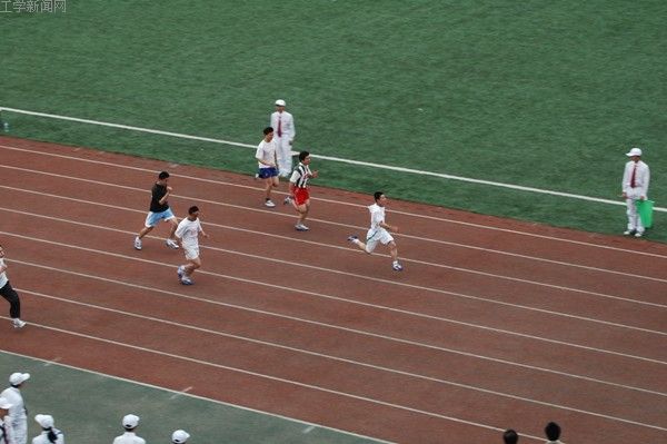 在上午9:35进行的教工中年男子100米决赛中,工程训练中心的高明夺得冠军,位列二至八名的分别为滕军(后勤集团)、王送(动能)、刘帆仲(直属机关)、谭渤(产业集团)、韩国元(经管)、张良(后勤集团)、刘仲坤(核学院)。