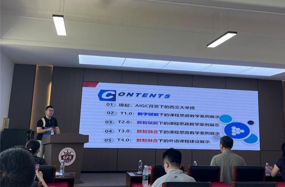 高洋教授以“构建数智化育人新生态:AIGC技术与外语课程思政的融合路径探索”为题,深入探讨了人工智能生成内容(AIGC)在外语教学中的应用前景。通过《理解当代中国》系列教材的具体教学案例,生动展示了智能教学平台在课程建设中的创新实践模式。