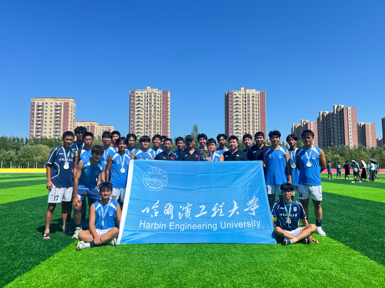 7月15日至22日举行的甲组男子足球比赛,我校足球队以小组赛5场比赛全胜,进15球0失球的成绩成功晋级4强,在半决赛中3:0战胜东北农业大学晋级决赛,在决赛中点球惜败东道主东北石油大学,最终获得第二名。