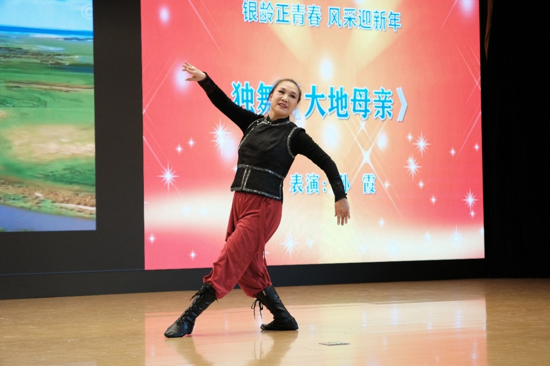 孙霞老师的独舞《大地母亲》,舞姿舒展,诠释着对生命与山河的深情眷恋。