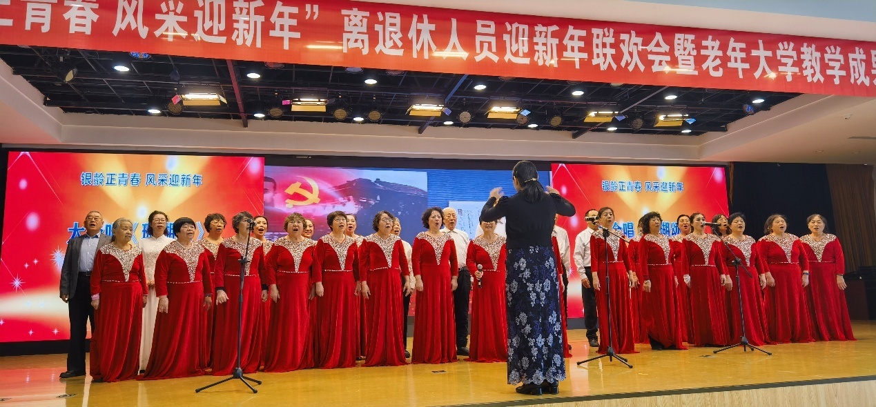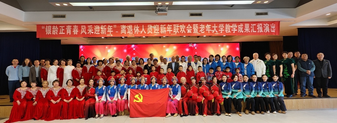 本次活动由离退休处精心策划,以“银龄正青春 风采迎新年”为主题,既是老年大学教学成果的集中展示,更是老青幼三代共贺新年的温馨聚会。演出涵盖器乐、舞蹈、合唱、模特表演、评剧、诗朗诵等13个精彩节目,全方位展现了哈工程离退休教职工“老有所学、老有所乐、老有所为”的精神风貌。