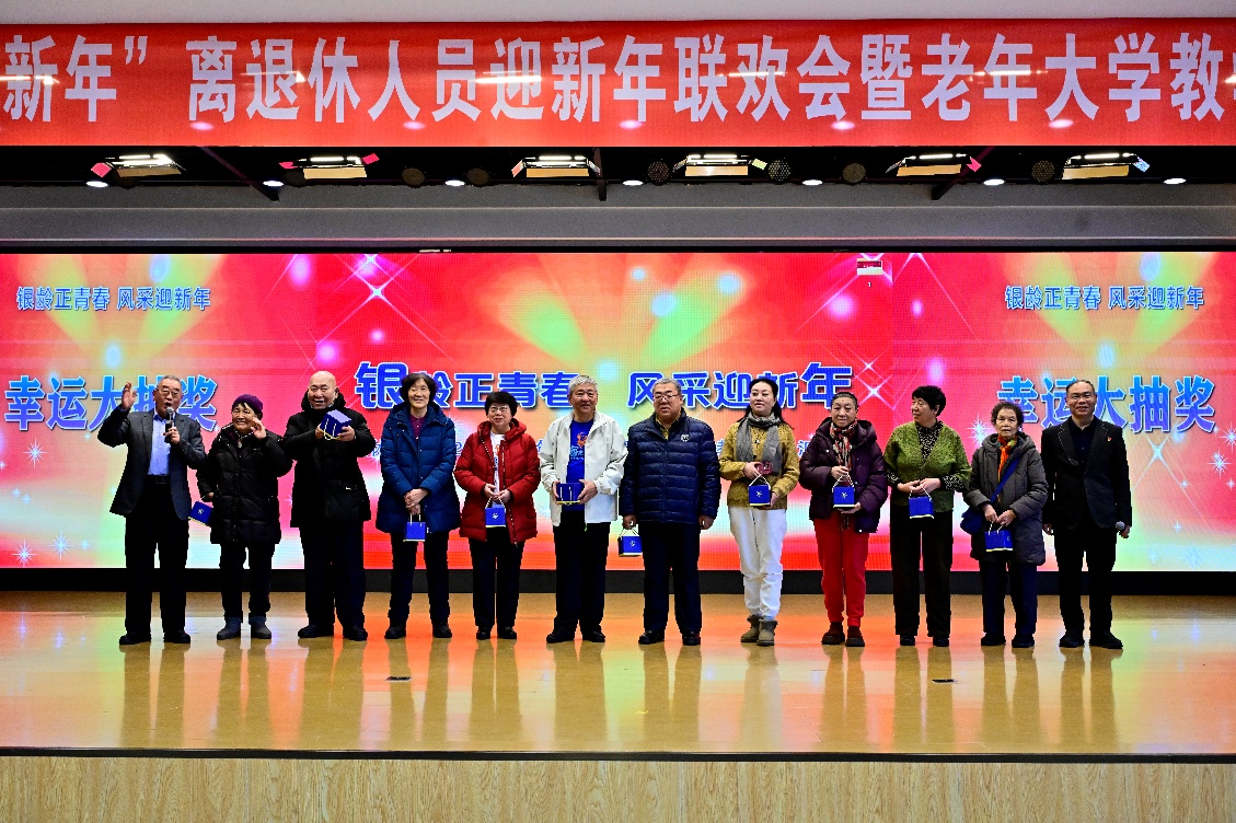 演出过程中穿插的两轮“幸运抽奖”环节,成为现场的一大亮点。离退休人员党委书记李平、离退休处处长于险波先后上台抽取幸运观众,获奖教职工手持抽奖券登台领奖,现场掌声与欢呼声此起彼伏。