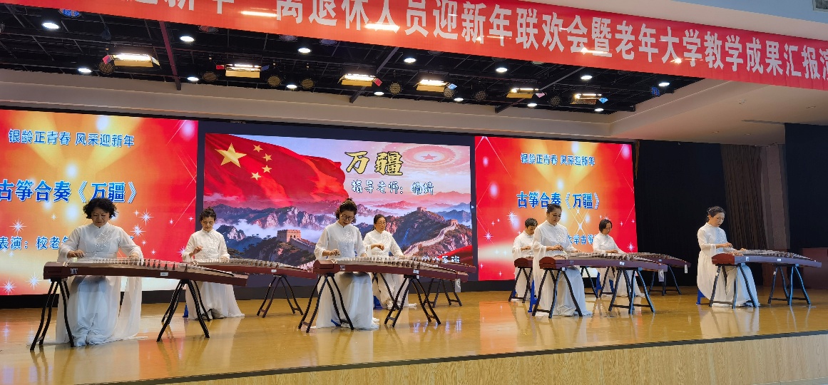 校老年大学古筝班的合奏《万疆》,弦音悠扬,诉说着对华夏文明的敬仰。