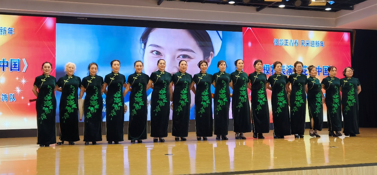 校老年大学服饰队的模特表演《花开中国》,将服饰之美与山河之秀融为一体,步履款款间尽显银龄风采。