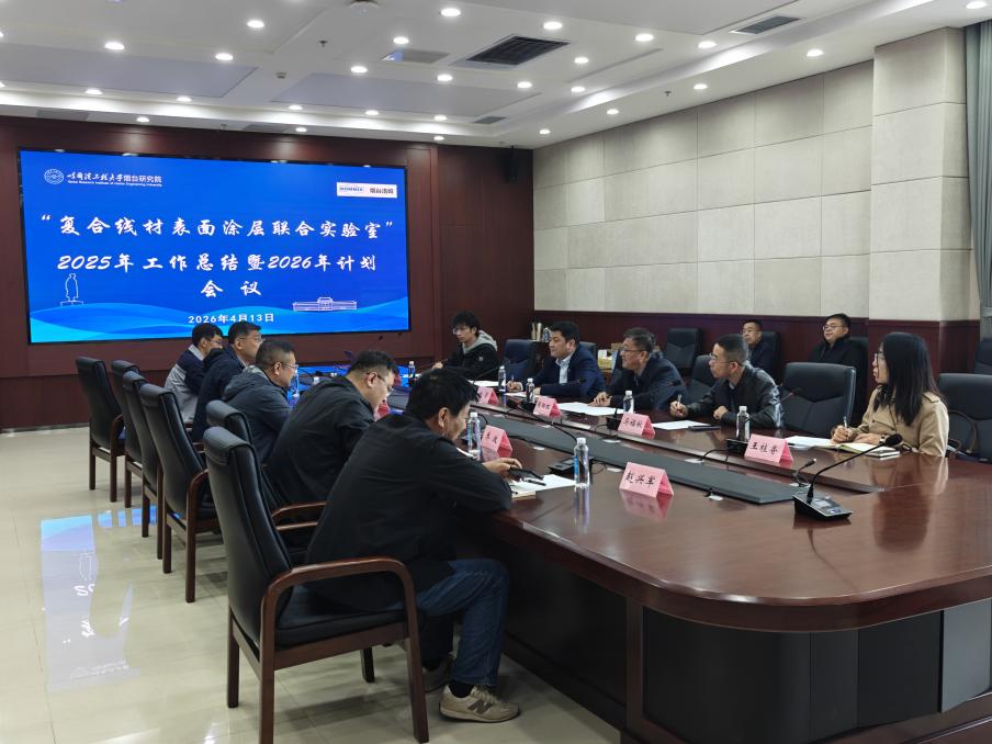 4月13日,复合线材表面涂层联合实验室 2025 年度工作总结暨 2026 年工作计划会议在烟台顺利召开。烟台研究院党委书记张阳红,烟台市蓬莱区科学技术局党组书记、局长吴长城,烟台洛姆电子有限公司董事长迟力夫出席会议,实验室核心科研骨干、项目团队成员参会,全面回顾合作成效,明确新一年技术攻关方向,彰显校企双方推动高端电子线材国产化替代与工艺绿色化升级的坚定决心。