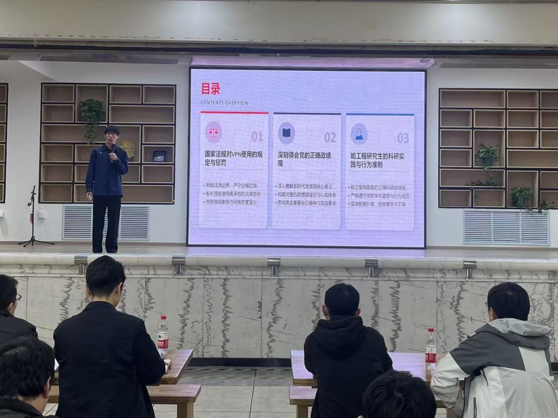 校党委研究生工作部部长苏屹作指导讲话。他对本次组会的内容设计、组织形式及育人实效给予充分肯定。他强调学术交流是提升研究生科研能力的重要途径,而开好开实研究生组会是提升学校研究生培养质量的重要举措。他对下一步发挥组会的各项育人作用提出三点希望,一是以研究生组会为载体,树立和践行正确政绩观;二是以研究生组会为抓手,打造导学思政哈工程范式;三是以研究生组会为场域,实现人才高质量培养目标。