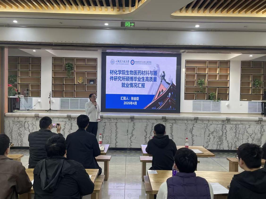 为充分发挥组会在师生思政育人、学术交流、科研能力提升与成长引领等方面的多元作用,4月24日上午,材化学院生物医学材料与器件研究所分析传感团队在未来学习中心举行特色组会。校党委研究生工作部部长苏屹、学院党委副书记刘东平、研究生辅导员张金臣列席会议,导师盖世丽、刘军、团队全体研究生及部分本科生代表参加会议。组会由研究生辅导员(教师)丁鹤副教授主持。