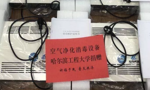 疫情当前,病毒灭活也是很重要的一个环节。元宵节前后,哈工程联合旗下企业哈尔滨工程大学船舶装备科技有限公司捐赠一批杀菌消毒率在99.6%以上的空气净化消毒设备驰援武汉。