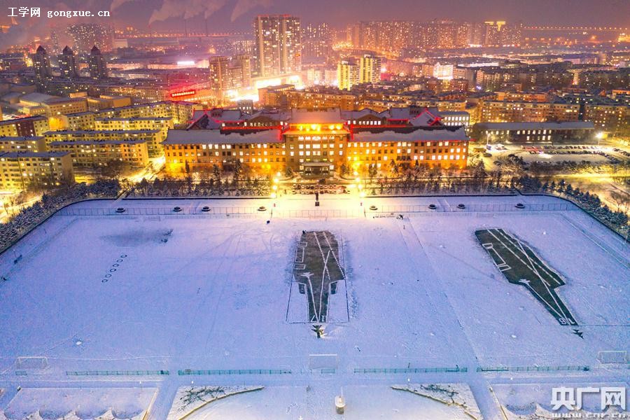 央广网哈尔滨12月20日消息(记者迟嵩通讯员金声 许菁)12月17日,我国第一艘国产航母山东舰交付海军,为庆祝这一激动人心的时刻,18日,哈尔滨工程大学400余名师生及校学生会机关党委蛟龙志愿先锋队延续了2018年岁末雪舰快闪为祖国庆生的创意,再次于学校军工操场“造”起了长76米、宽17米的辽宁号、山东号两艘航母。