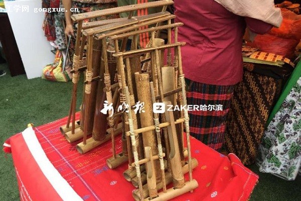这边手抓饭还没吃上,那边印度尼西亚展位里飘出了音乐,土木工程专业的留学生叶济金正拿着两个竹子做的乐器演示。"你看这里有1、2的标号代表音符。把他们串起来就是音乐。"发出声音的装置叫"安各隆(音译)",是印度尼西亚的一种民间乐器。叶济金"自来熟"的性格加上流利的中文给印度尼西亚展区拉去不少人气。