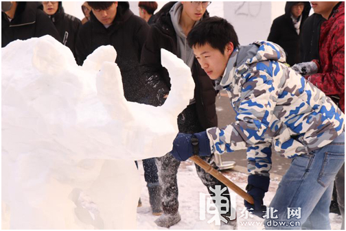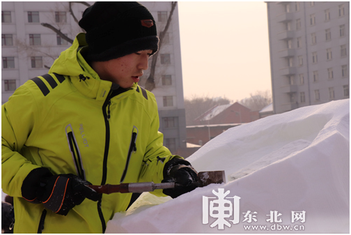 东北网12月23日讯(杨翩然 饶泽靖记者 霍枭涵)“这次一定要圆雪雕梦,不给自己的大学生活留下遗憾。”哈尔滨工程大学机电工程学院的大三学生江辉从小在山西长大,却向往北国的冰天雪地,在零下20度的户外温度下,他用冰雪雕刻出他的梦想。