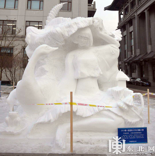 东北网1月7日讯(金声 张海亚 杨翩然 记者 霍枭涵 编辑 李玥)1月4日至7日,2018年第十届国际大学生雪雕大赛在哈尔滨工程大学举行,经过三天激烈角逐,鲁迅美术学院的《环》、华南师范大学的《雨打芭蕉落闲庭》获特等奖,哈尔滨工程大学的《生命曲线》、西北农林科技大学的《四方之志》等九个作品获一等奖。