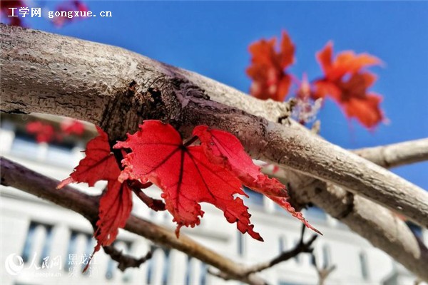 霜叶红于二月花。进入九月末,哈工程的枫树叶初现红色。由于近期哈尔滨的气温比较“温和”,减慢了枫树叶变色的过程。寒露过后,哈尔滨降温明显,哈工程校园内火红的枫树林再次成为特色景观。