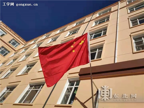 学生公寓外悬挂国旗。图片由哈尔滨师范大学提供。