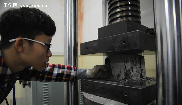 本项赛事为期一天,分为两个环节,混凝土块加载和答辩。据本次大赛裁判之一、哈尔滨工程大学教师吕建福介绍,参赛作品为尺寸为150*150(mm)、密度低于2250kg/m3、能承受载荷0.5~0.8MPa的轻质混凝土块。而在实际测试中,机器将施加15kN/s的载荷。吕老师也介绍了评分的规则:加载环节强度占25分,比强度占40分,强度介于50~65MPa可得分,而比强度(承受载荷与密度之比)越高得分越高。答辩环节同期进行。