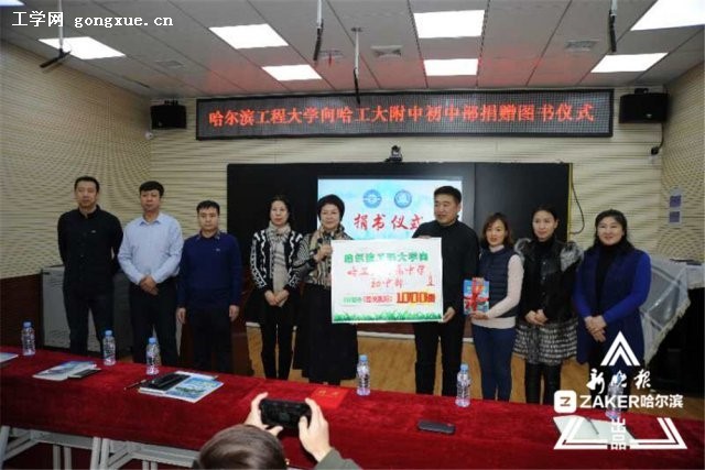 19日,哈尔滨工程大学向哈尔滨工业大学附属中学初中部图书捐赠仪式在哈工大附中初中部的多功能室举行。工程大学向哈工大附中初中部捐赠《图说舰船》1000册。