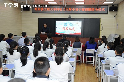 12月19日,哈尔滨工程大学向哈尔滨工业大学附属中学初中部图书捐赠仪式在哈工大附中初中部的多功能室举行。哈工大附中校长王蕾,哈工程档案馆副馆长、哈军工纪念馆研学基地负责人赵金龙,以及两校相关负责人,哈工大附中优秀学生代表参加仪式。仪式上赵金龙代表工程大学向哈工大附中初中部捐赠《图说舰船》1000册,王蕾代表工大附中接受捐赠。仪式上,哈尔滨工程大学哈军工纪念馆基地聘请王蕾校长为顾问,并颁发了聘书。