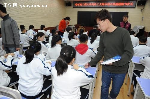劲彪新闻19日讯(金声 栗浩 殷承泰 记者 宫玉范 文摄)今天,哈尔滨工程大学向哈尔滨工业大学附属中学初中部图书捐赠仪式在哈工大附中举行。哈工程档案馆副馆长、哈军工纪念馆研学基地负责人赵金龙代表学校向哈工大附中初中部捐赠《图说舰船》1000册,哈工大附中王蕾校长受聘为哈尔滨工程大学哈军工纪念馆基地顾问。