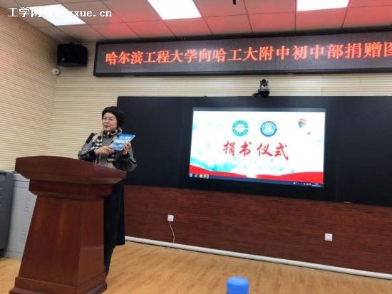 12月19日,哈尔滨工程大学向哈尔滨工业大学附属中学初中部图书捐赠仪式在哈工大附中初中部的多功能室举行。哈工大附中校长王蕾,哈工程档案馆副馆长、哈军工纪念馆研学基地负责人赵金龙,以及两校相关负责人,哈工大附中优秀学生代表参加仪式。仪式上赵金龙代表工程大学向哈工大附中初中部捐赠《图说舰船》1000册,王蕾代表工大附中接受捐赠。仪式上,哈尔滨工程大学哈军工纪念馆基地聘请王蕾校长为顾问,并颁发了聘书。