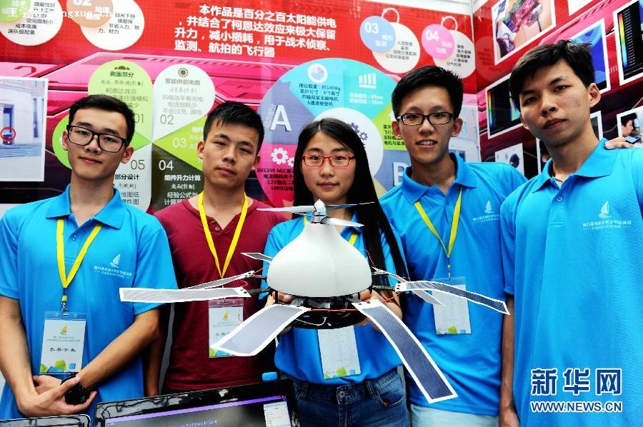 8月10日拍摄的上海理工大学参赛作品《太阳能战术侦察机》。新华社记者 王松 摄