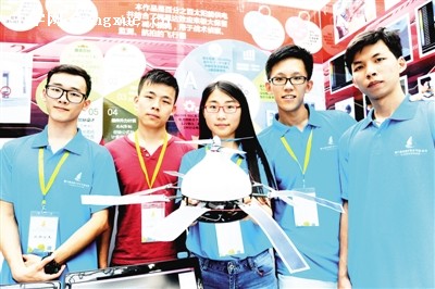 图为上海理工大学学生展示参赛作品“太阳能战术侦察机”。
